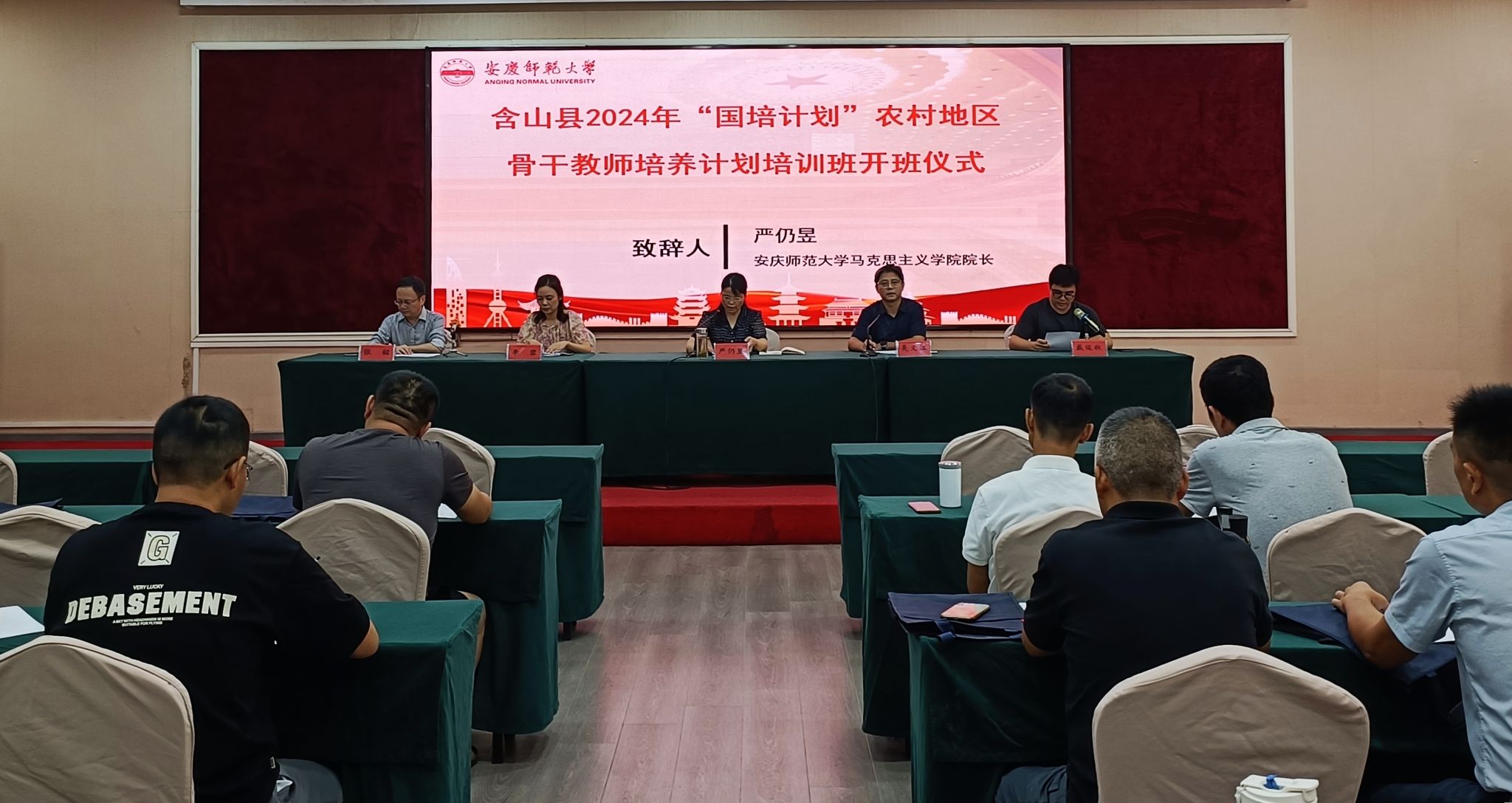 9月7日下午,在安庆大酒店举办了集中研修阶段开班仪式,学院经理严仍昱、继续教育学院副经理吴义江、含山县教师进修学校继续教育办公室相关人员、项目负责人及全体学员参加了此次活动。开班式上,严仍昱强调,“国培计划”是教育工作者提升自我、精进业务、共谋教育发展的宝贵平台,提供了系统学习、深入交流的机会,是携手并进、共同推动乡村教育振兴的重要途径。吴义江对远道而来的参训教师表达了诚挚的欢迎,向与会教师介绍了安庆深厚的历史底蕴与独特文化魅力,并对本次培训班寄予厚望,期待圆满成功。随后项目负责人进行了项目实施方案解读,学员代表进行了表态发言。