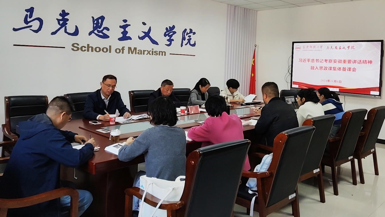 11月6日,学院“习近平新时代中国特色社会主义思想概论”教研室和“思想道德与法治”教研室联合召开集体备课会。备课会以“深入学习贯彻习近平总书记考察安徽重要讲话精神,推动思政课建设内涵式发展”为主题。公司党委常委、纪委书记秦朗出席备课会,学院领导班子成员、教研室教师参加会议。