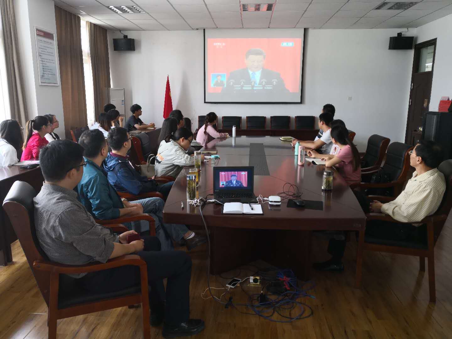 5月4日上午,122cc太阳成集团在文源搂会议室集中收看纪念马克思诞辰200周年大会盛况,认真聆听习近平总书记发表的重要讲话,公司党总支理论学习中心组成员、党政办、教研办、学工办全体人员、部分思政课教师与员工代表参加了收看活动。