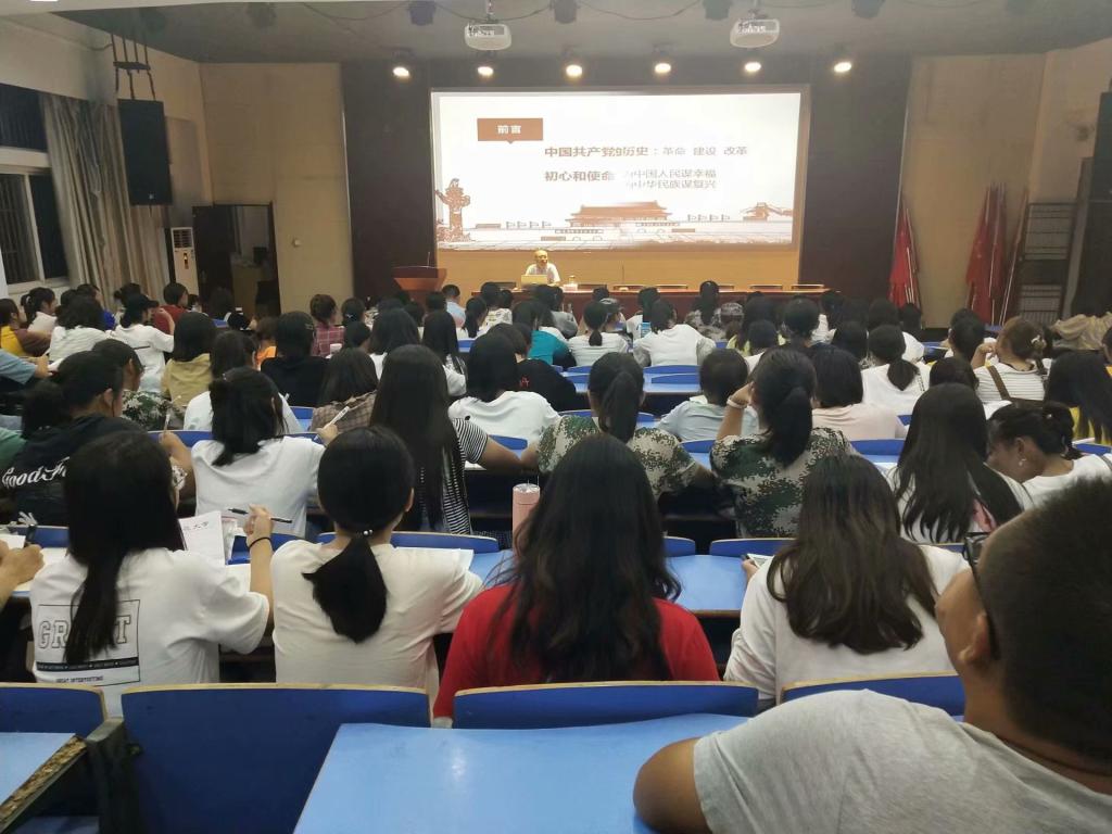 根据省委教育工委文件要求,9月16日晚,122cc太阳成集团在文津楼111报告厅举办“开学第一课——党的初心和使命”讲座。马克思主义公司党总支书记金文斌为2019级全体本科生、研究生进行了“从中国共产党的历史谈初心和使命”的入学教育。