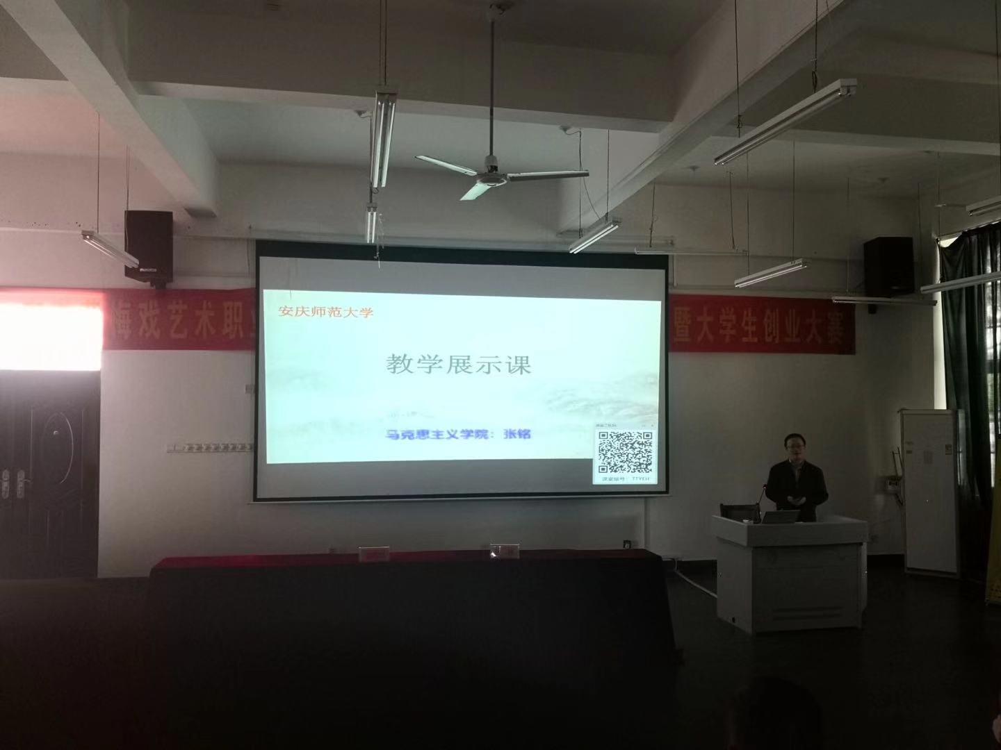 10月16日下午,应安徽黄梅戏艺术职业学院的邀请,122cc太阳成集团教师、全省高校优秀思政课示范课巡讲团成员张铭在黄梅戏职院文化楼101教室进行一堂思政课示范课教学展示。黄梅戏职公司党委副书记、经理苏斌、部分党委班子成员、相关部门负责人、全体思政理论课教师、辅导员及2019级部分新生参加了相关活动。