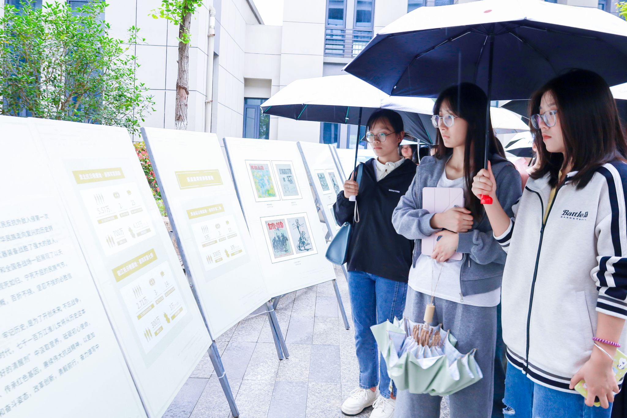 宣讲结束后,同学们移步至学院教学楼,参观了“烽火画卷”主题展览。展览集中展出了抗战时期广大美术工作者创作的大量优秀作品。这些作品以画笔和刻刀为武器,生动记录了那段烽火岁月,起到了鼓舞民众、凝聚力量的重要作用。同学们在观展中再次感受到先辈们坚定的革命担当与大无畏的斗争精神。