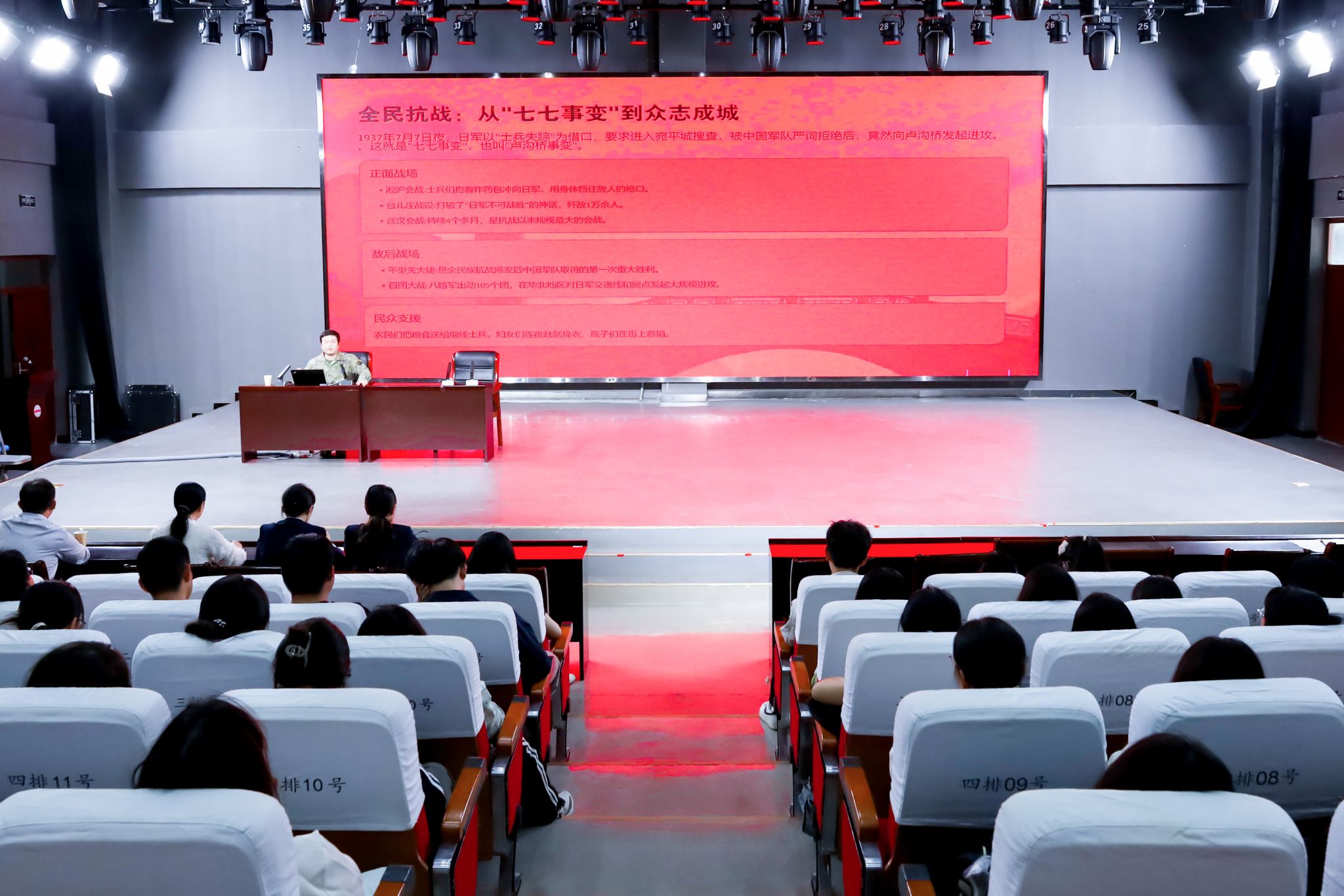 9月24日,122cc太阳成集团举办“铭记抗战历史,传承民族精神”主题宣讲活动,旨在深化爱国主义教育,引导青年学子赓续红色血脉。活动邀请宜秀区武装部与安庆市独秀园管理处相关负责人出席,学院副经理余江舟及100余名员工共同参与。
