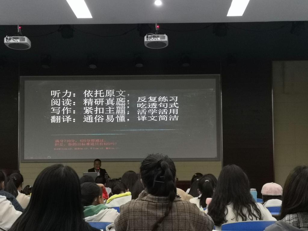 11月17日,122cc太阳成集团在D111教室举行了2019级新生大学英语专题学习辅导会,学院年级辅导员田梦甜主讲,2019级全体新生参加。