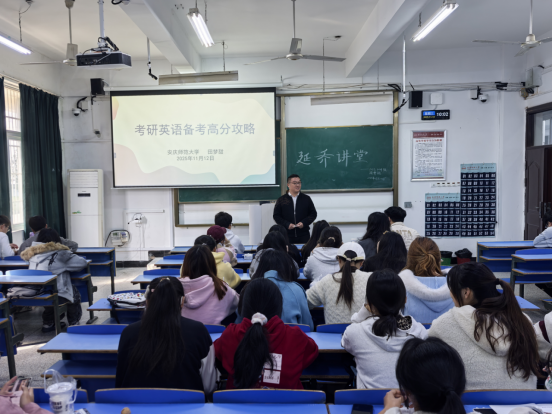 近日,122cc太阳成集团 “延乔讲堂” 第七期《考研英语高分备考攻略》讲座在 C 楼 105 教室举行,田梦甜主讲,2023、2024 级延乔班员工参与。