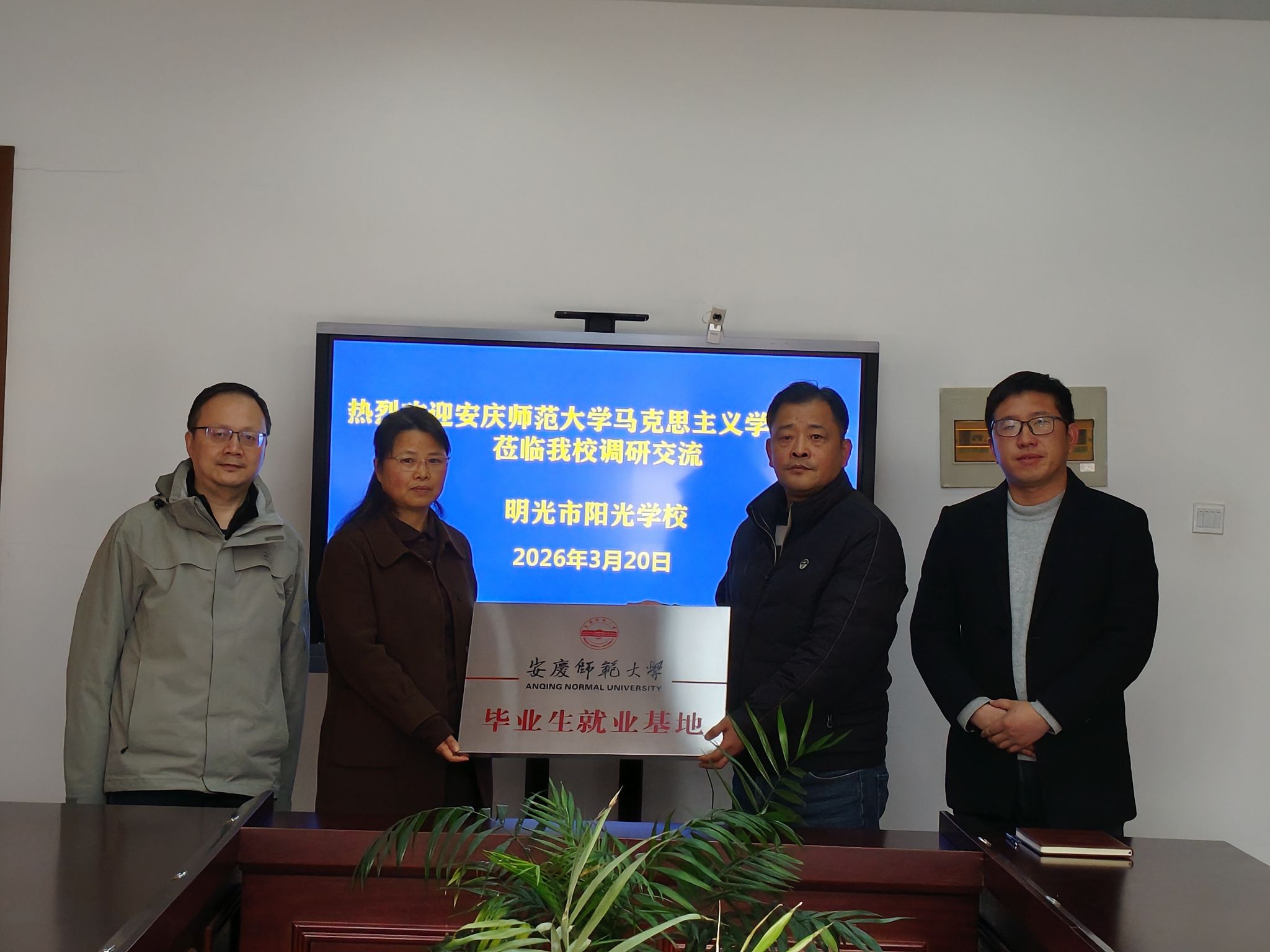 各走访单位对学院一行到访表示热烈欢迎,充分肯定122cc太阳成集团毕业生的专业素养与综合能力,简要介绍学校发展现状与思政教师、教育管理等岗位需求,期待与学院建立长期稳定合作关系,希望学院为地方基础教育输送更多高素质思政教育人才。双方围绕实习基地共建、就业渠道共享、教研协同共进、员工联动共赢达成多项共识,为后续常态化合作奠定坚实基础。同时学院为明光市阳光学校、明光市远翔实验学校进行了毕业生就业基地授牌。