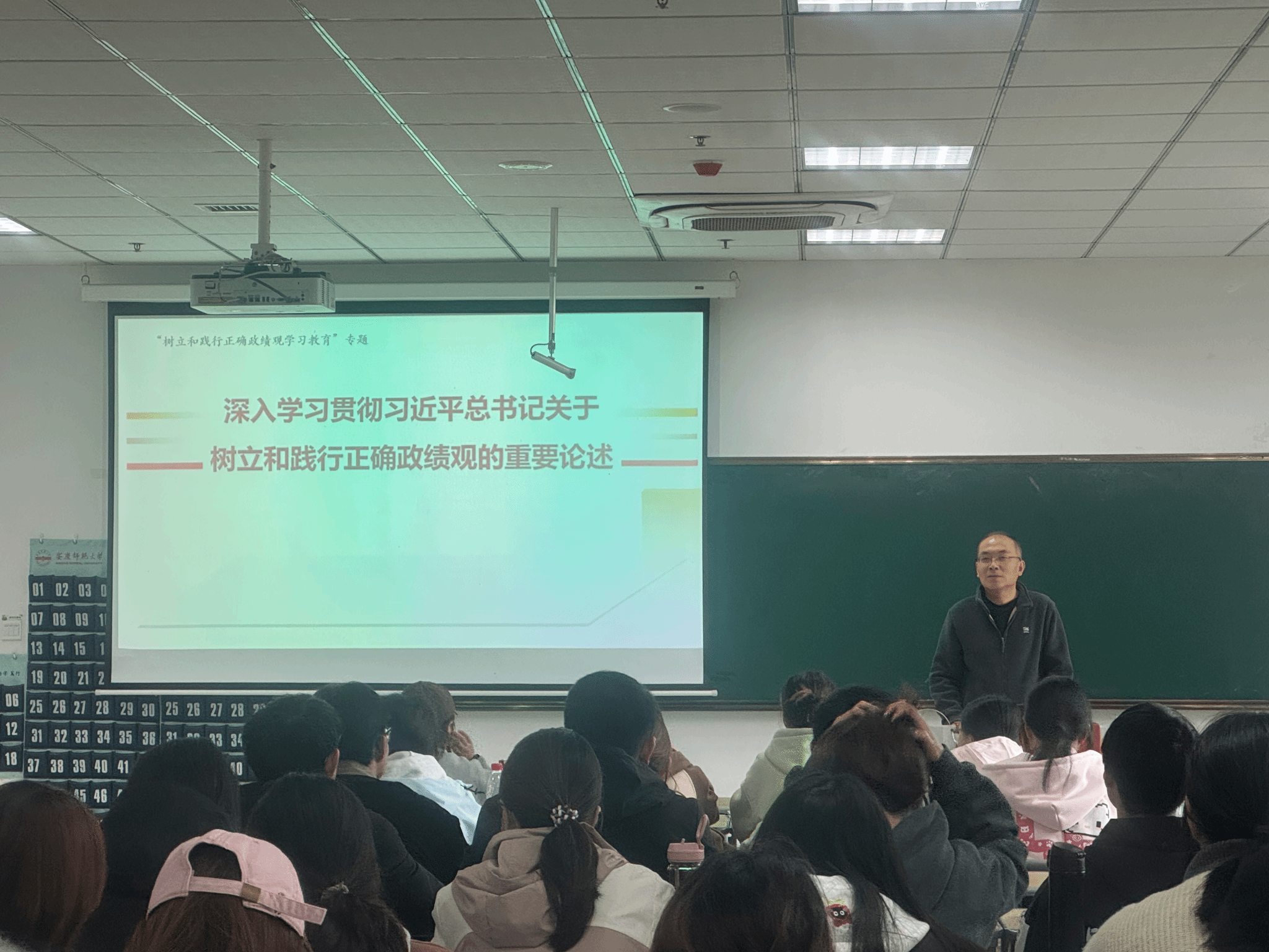 金文斌以“深入学习贯彻习近平总书记关于树立和践行正确政绩观的重要论述”为题,围绕“什么是正确政绩观”“为什么要树立正确政绩观”“如何践行正确政绩观”三个核心问题,结合习近平总书记关于树立和践行正确政绩观的重要论述和党的建设要求,系统阐释了树立和践行正确政绩观的内涵要义,剖析了错误政绩观的危害,明确提出要坚持人民至上、实事求是、实干为要,把为民造福作为根本价值追求。他强调,青年学子要筑牢政治忠诚、强化务实担当、坚守为民初心,将正确政绩观融入专业学习与服务实践,练就过硬本领,以“功成不必在我、功成必定有我”的境界,创造经得起检验的实绩。