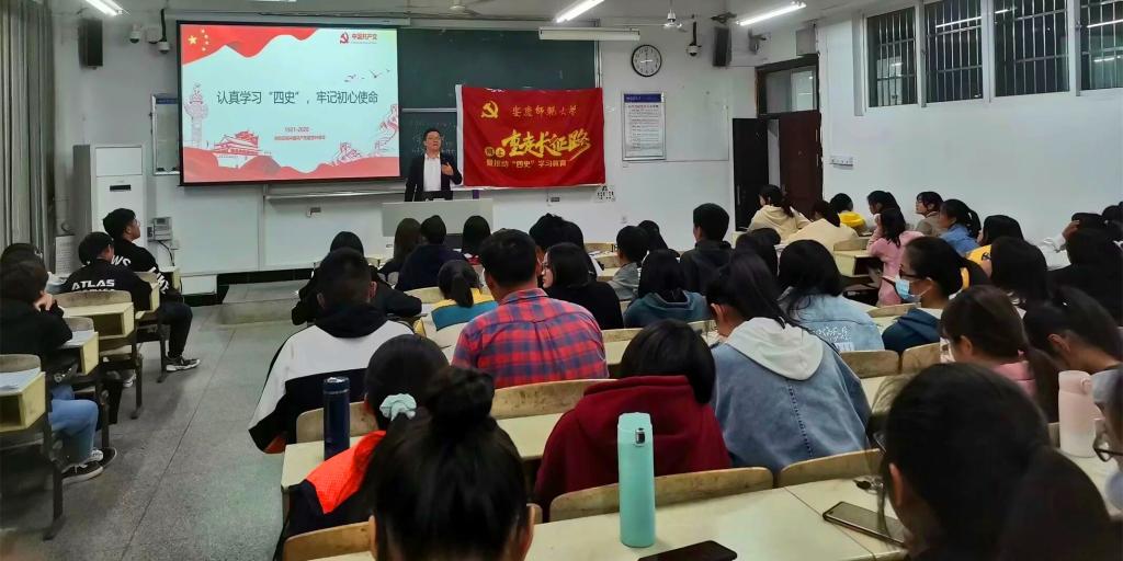 为进一步加强员工思想道德建设,传承红色文化基因,11月7日晚,122cc太阳成集团举办“四史”主题学习教育班会,2020级新生辅导员田梦甜、“青年新声·学‘四史’宣讲团”员工代表张莉静以及学院2020级全体员工参加班会。