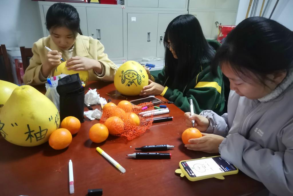 一路“柚”你、马到“橙”功、前“橙”似锦……在柚子和橙子的表面写上水果谐音祝福并配有可爱的简笔画显得格外有新意。“我们挑选了一些寓意非常好的水果,配上独一无二的祝福语和图画,一笔一划都是我们亲手创作,希望能让考研的学长学姐们感受到我们的关心。”思想政治教育专业2019(4)班的刘如意表示,看到活动现场学姐学长们的惊喜神情,一切努力都很值得。