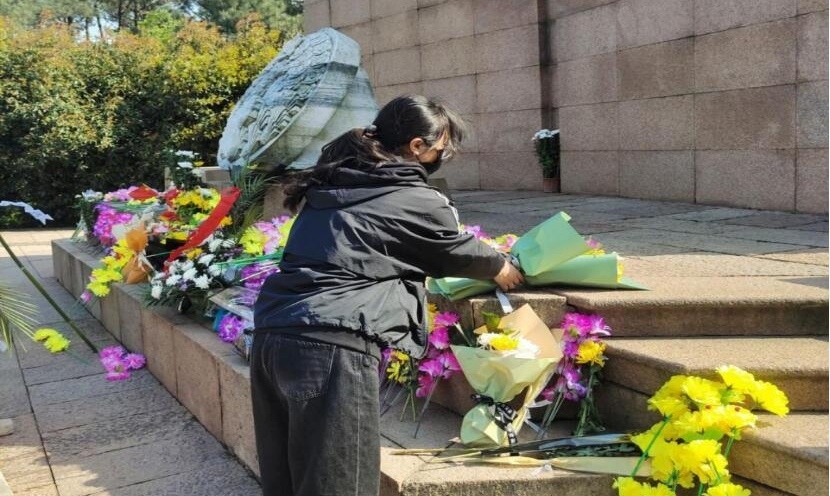 4月3日,思想政治教育专业2020级(1)班水雯静和古晨晨前往南京市雨花台烈士纪念馆,向革命先烈鞠躬并献上鲜花以表哀思。“当耸立的烈士雕塑映入眼帘,我们心中的敬意油然而生,不禁回想邓中夏等革命烈士的伟大事迹,团结阶级力量,推翻封建统治,面对敌人的威逼利诱与严刑拷打,宁死不屈,最终英勇就义。这种大无畏的英雄精神值得我们永远学习。”