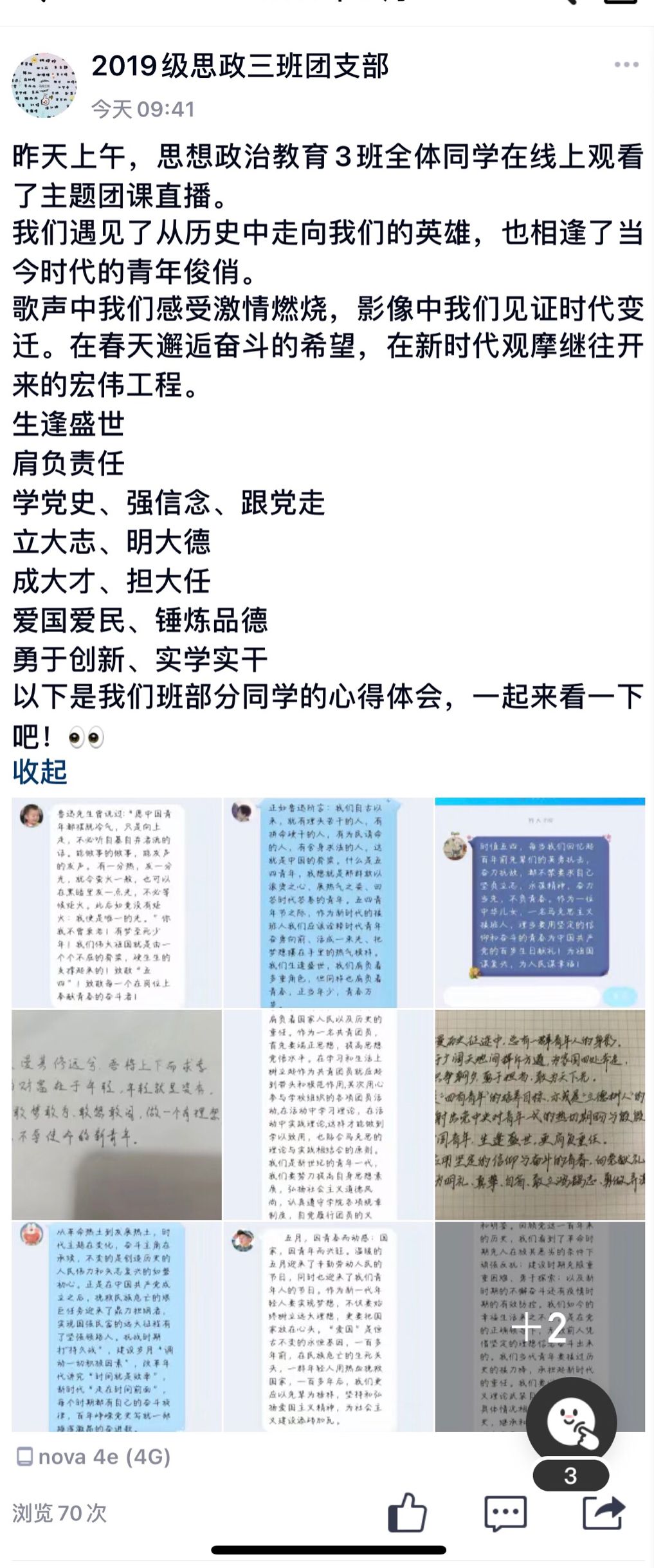 “此次云团课的内容十分丰富,有红歌、微视频、榜样语录等内容。团中央紧跟时代发展,用新颖的方式引领我们去学习青年精神。”思想政治教育专业2019级(4)班刘如意学习后表示:“生逢盛世更要肩负责任,团课教给我们的东西要能够学以致用。青年节设立的目的也是希望全国青年能够团结起来,将青春力量更坚实地投入到实现中国梦的奋斗过程中去。”
