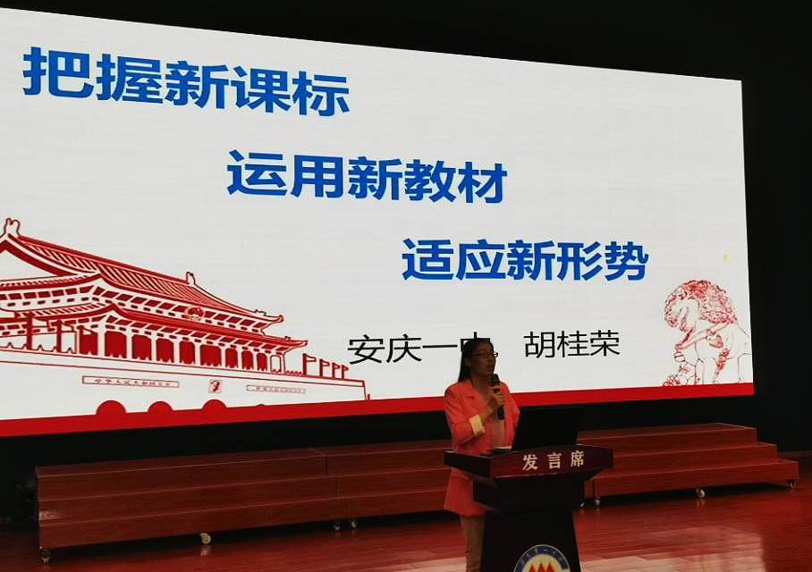 姜莉老师首先从“队伍简介”、“常规教研”以及“特色活动”三个方面介绍安庆一中政治教研组的概况。该教研组主要采用单独备课与集体备课相结合的方式,让老教师与青年教师形成“师徒结对”,从而帮助青年教师熟悉教学业务,掌握教学方法。