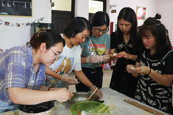 切菜、沥水、调馅、擀面皮……小小的活动室里热闹非凡。6月11日上午,学院研究生党支部联合学院团委在七号楼二楼活动室面向学院全体在校教师和研究生开展“我为群众办实事”之端午节慰问活动,公司党委书记金文斌,研究生支部书记和部分教师参加了此次活动。