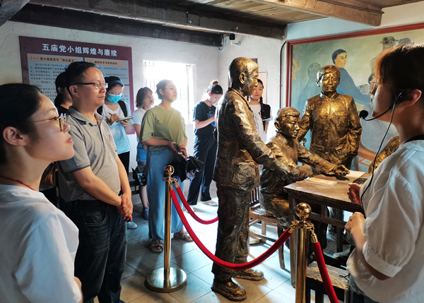 古色古香的民居是传统文化与革命文化的交融。这里是安庆地区农村第一个党组织——五庙党小组的旧址,也是革命烈士程千里的故居。同志们在这里了解了程千里、程之凤、余良鳌、王长青、胡绍瑗、梅竹松六位烈士的故事,以及他们筹办五庙党小组,开展革命运动的艰辛历程。遗址相较展馆又增添了几分生活气息,使革命烈士们的形象更加鲜活生动起来,同志们在参观学习时也产生了更深刻的情感共鸣。