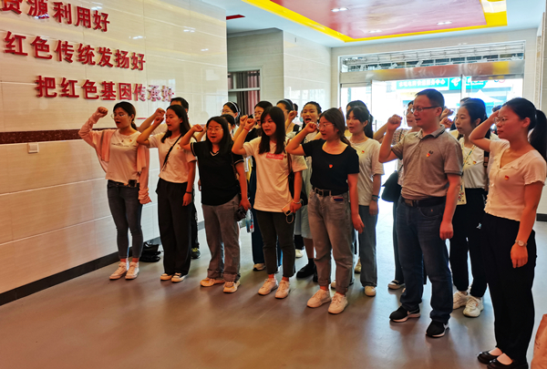 告别潜山烈士陵园,学院一行前往大别山•水吼革命事迹陈列馆。参观学习前,公司党员同志在陈列馆中重温入党誓词。