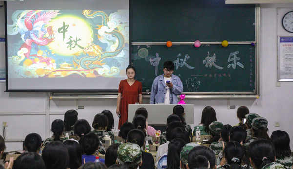 “五、四、三、二、一,晚会开始!”9月21日晚上,在主持人与观众的激情呐喊中,中秋联谊晚会如期拉开序幕。击鼓传花、诗歌朗诵、你画我猜等有趣小游戏,百余名师生共同参与。