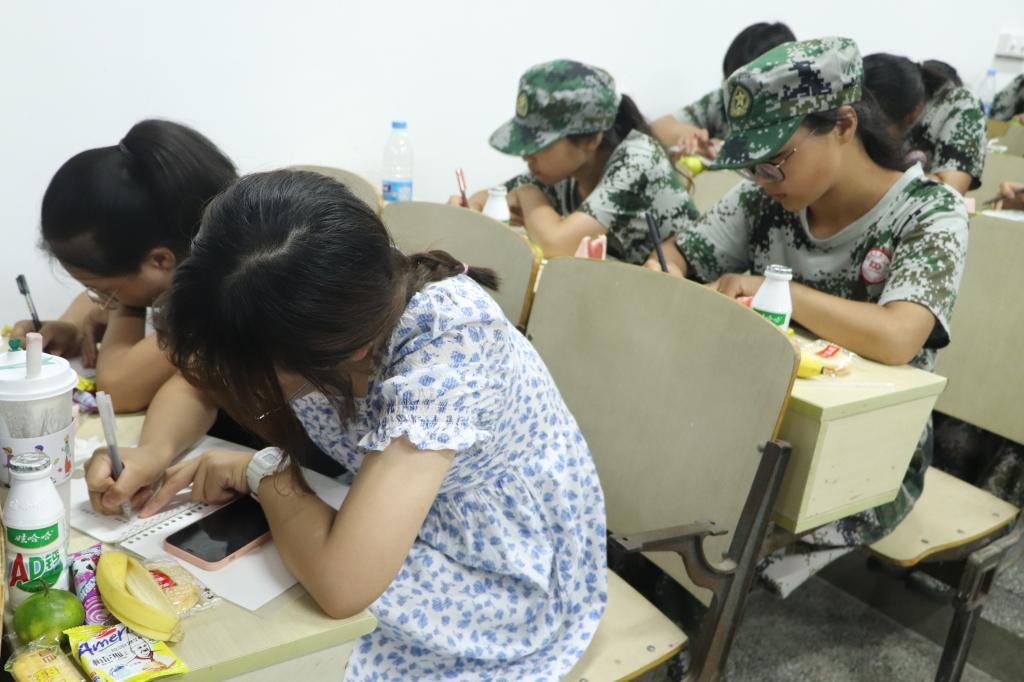 “明月几时有,把酒问青天。不知天上宫阙,今夕是何年……”节日当晚,身着军训服的新生们正低头“奋笔疾书”,以书信的形式向家人们传达中秋思念。