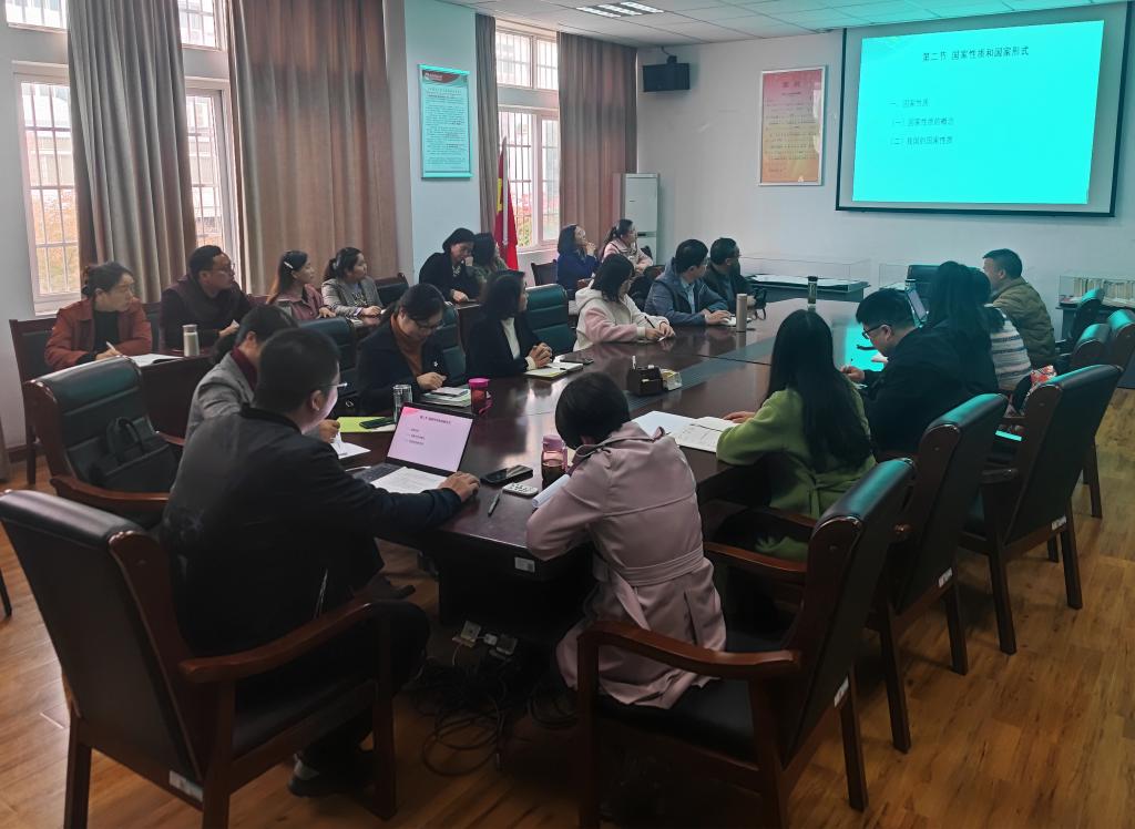 在教学观摩会上,青年教师陈道发博士就《法学概论》课程中宪法部分的国家性质内容,从国家性质的一般到我国的国家性质进行了教学展示。与会老师们就陈道发的教学展示进行评议,从教学设计、教学内容、教学方法等方面提出了中肯且宝贵的建议。