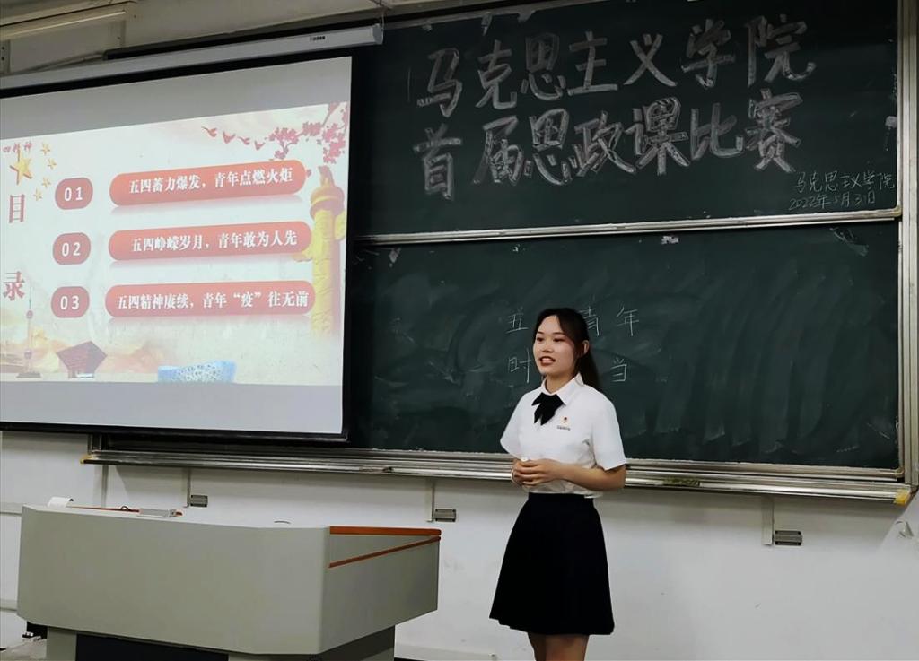 决赛中,14位员工化身思政课教师,围绕思政课程中的有关章节或专题,结合新时代重大主题和时事热点问题进行讲课。经过一番激烈竞争,本科方悦彤、夏同童,硕士生王颖、曾慧馨4名同学进入前四名,将代表学院参加校赛。