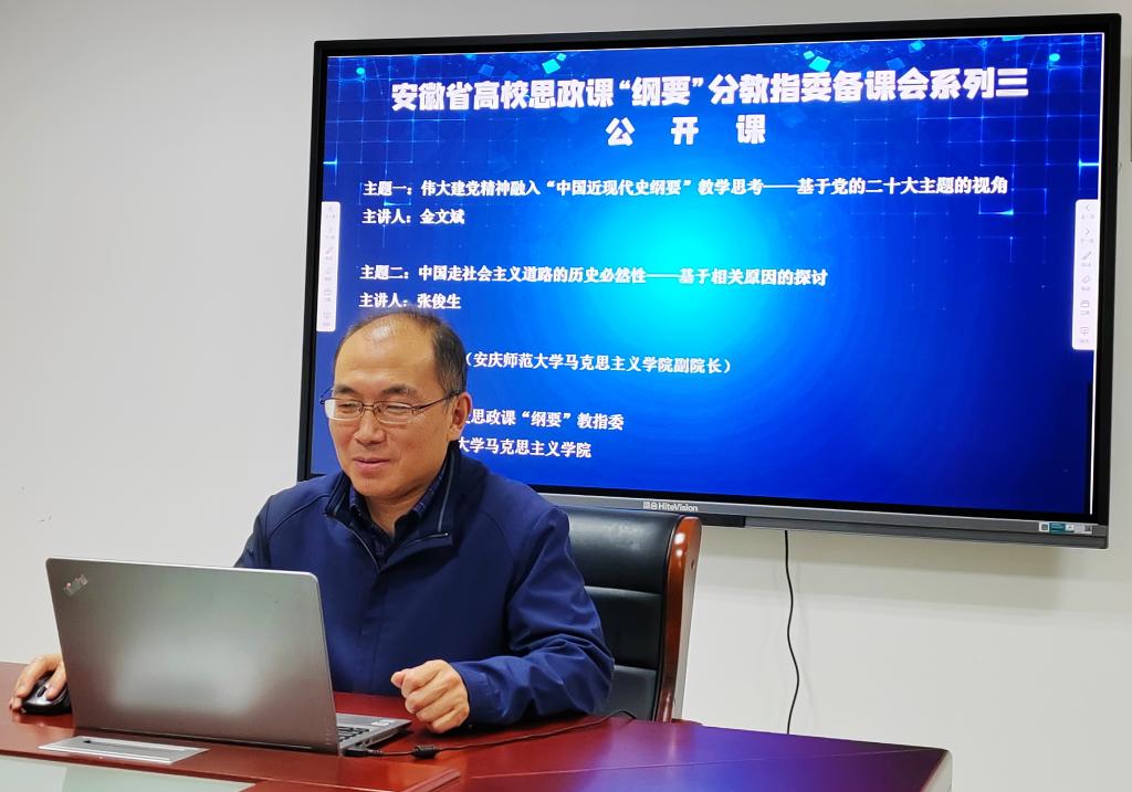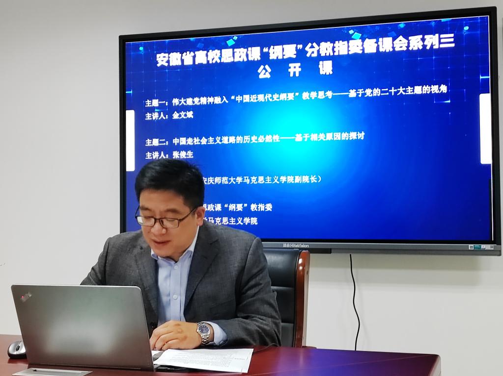 11月16日,由安徽省高校思政课“中国近现代史纲要”分教学指导委员会主办、122cc太阳成集团承办的集体备课会在腾讯会议线上举行。安徽省教学名师、122cc太阳成集团教授金文斌,学院副经理张俊生应邀作了辅导报告,学院专兼职教师、省内各高校师生200余人参加了会议。学院副经理余江舟主持集体备课会。