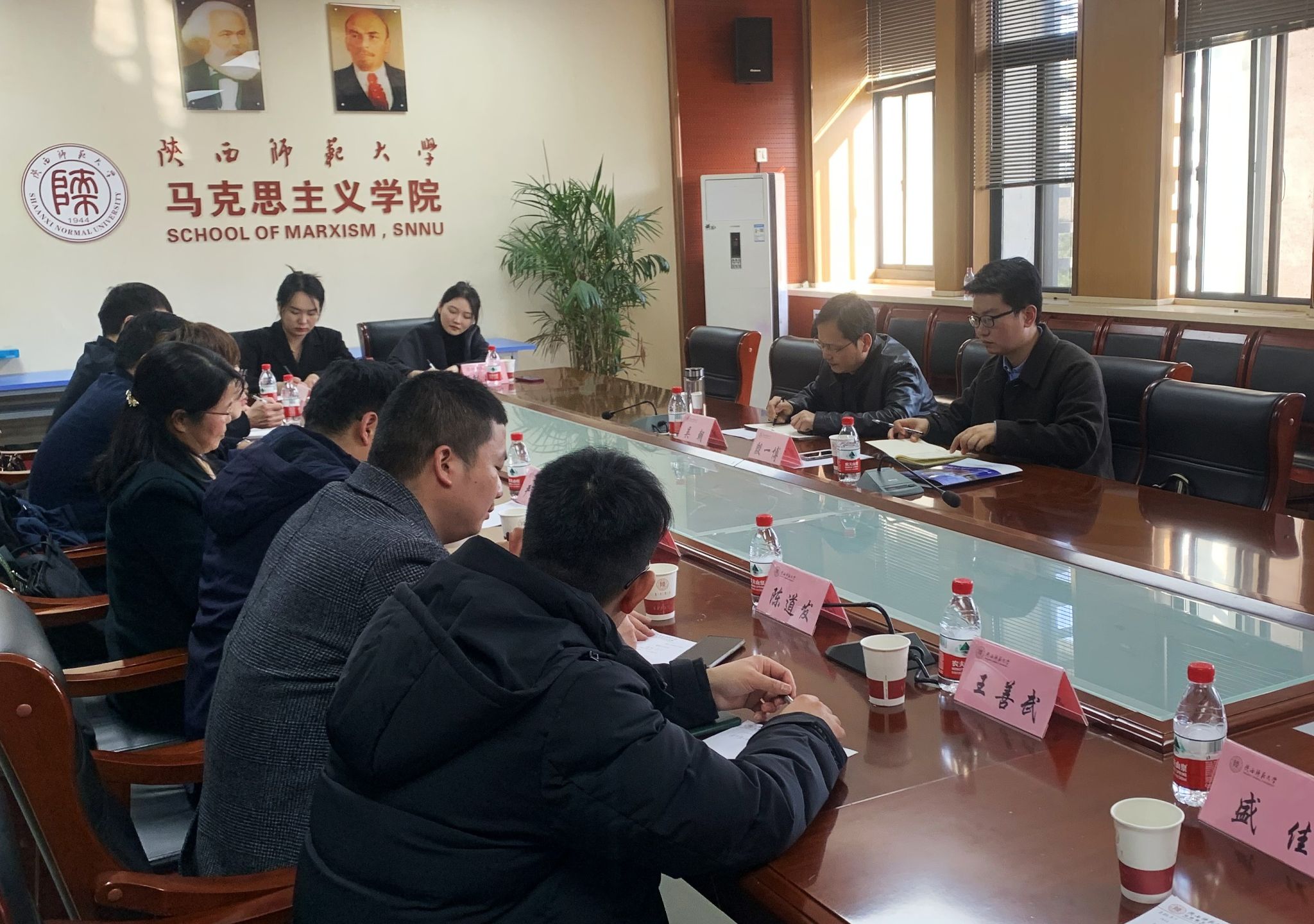 近日,学院经理严仍昱、副经理张俊生一行6人赴陕西师范大学进行调研。陕西师范大学122cc太阳成集团副经理吴朝、副经理殷一博参加调研。