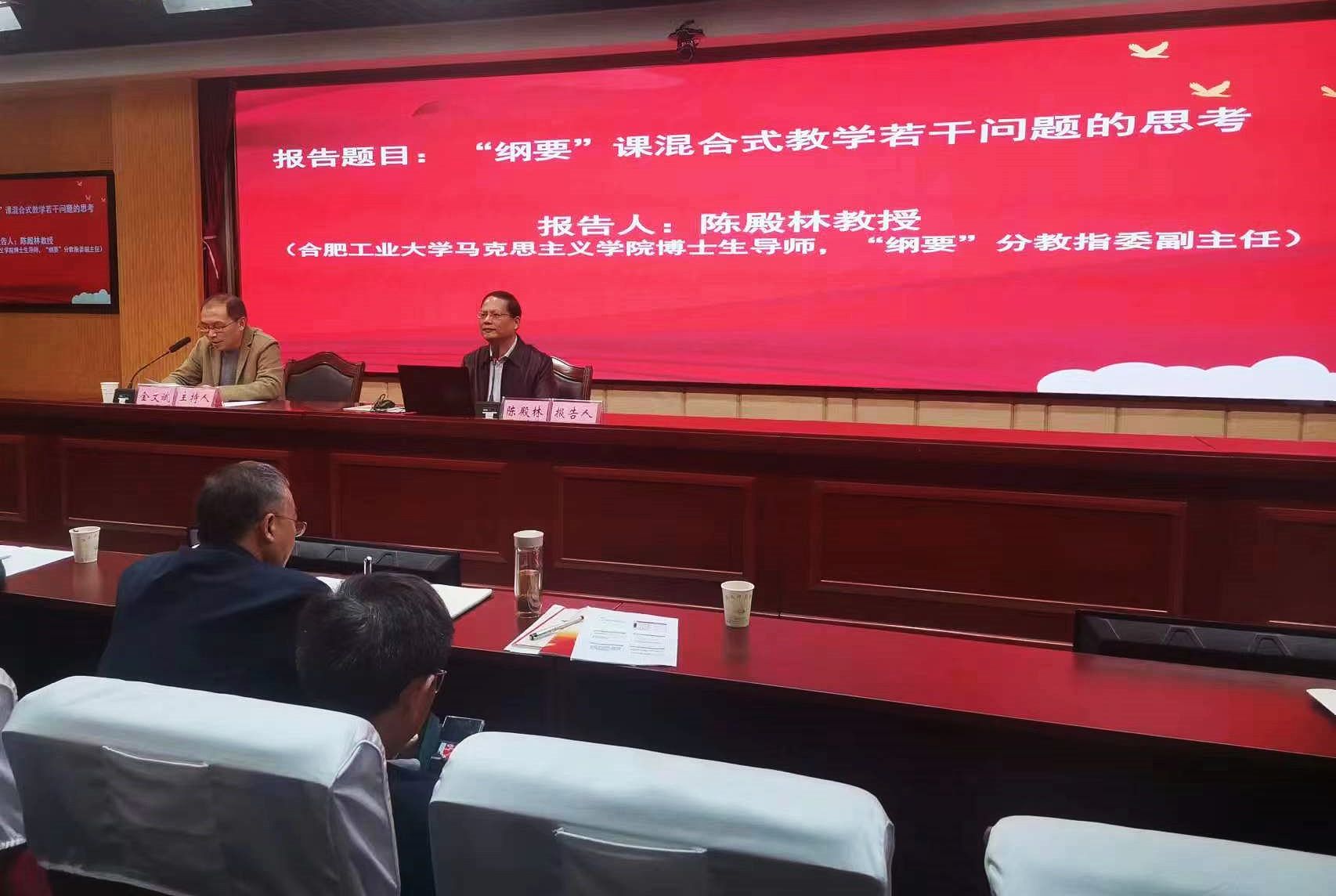 3月11日,安徽省高校思政课教指委“中国近现代史纲要”分教指委工作会议暨大中小学思政课一体化研讨会在淮南师范学院举行。“纲要”分教指委副主任金文斌教授参加大中小学思政课一体化研讨会,主持“思政课论坛”四场报告会,参观了该校“党史教育馆”,对“中国近现代史纲要”分教指委年度工作进行了交流研讨。(撰稿、摄影:陈安定 审核:余江舟 严仍昱)