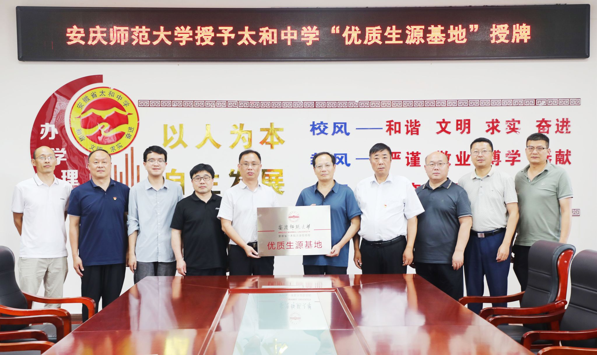 7月3日,学院副经理余江舟带领教务和实验实训中心负责人一行前往太和中学参加“优质生源基地”签约及授牌仪式。太和中学党总支书记王永先、副董事长王德民等公司党政领导班子成员参加授牌仪式。