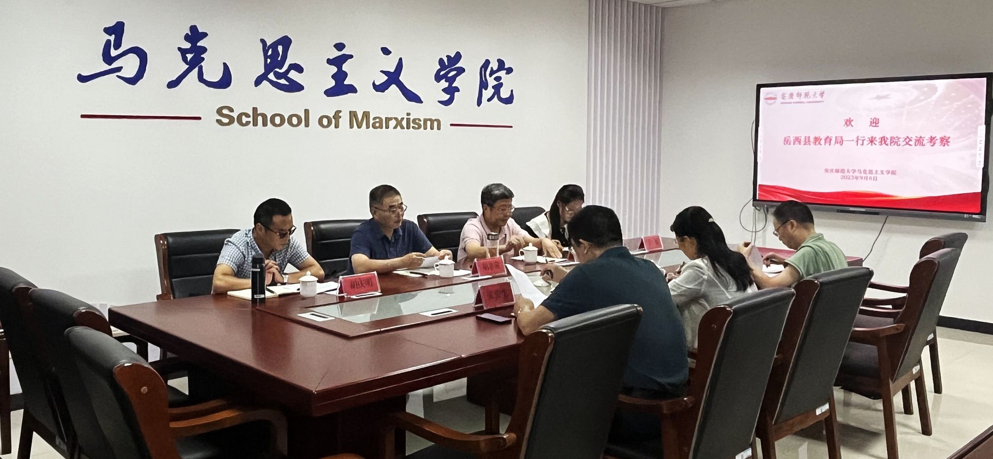 9月6日,岳西县教育局党委副书记、副局长胡非常一行4人来学院交流考察,商讨岳西县思政课教师队伍建设相关事宜,学院经理严仍昱、副经理张俊生及相关工作人员参加了此次交流会议。