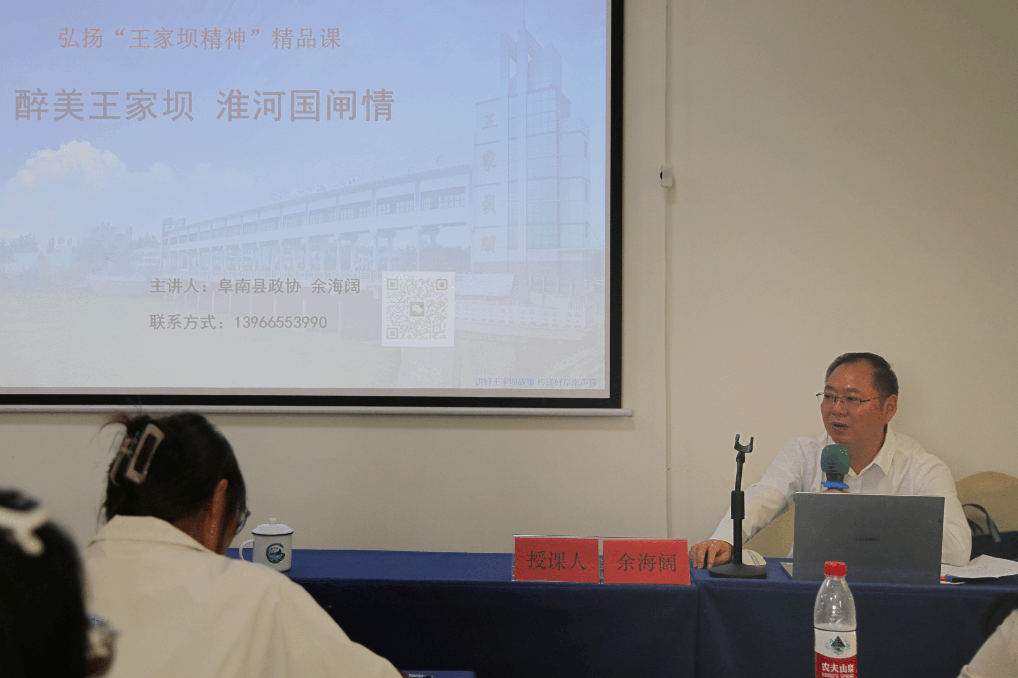 参观完王家坝抗洪纪念馆后,“延乔班”员工回到报告厅,学习“弘扬‘王家坝精神’精品课”。余海阔曾在王家坝镇工作十年之久,对王家坝镇了解、熟悉、感情至深,从“昔日溯源”“蒙洼新貌”“继往开来”三个方面深入讲解淮河的基本情况、王家坝精神的由来、王家坝精神的内涵和文化价值,学习苦难岁月时期感天动地的故事、在脱贫攻坚奋斗中对美好生活的向往,体悟人与自然和谐共生下的幸福生活。“不做水奴隶,要做水主人。”余海阔以自身实际工作经历直观展现淮河抗灾史、自救史、治理史,使“延乔班”同学深刻认识到没有中国共产党的坚强领导,没有党和人民的血肉联系,就没有一次次淮河防汛救灾的胜利,就没有全面建成小康社会的胜利。