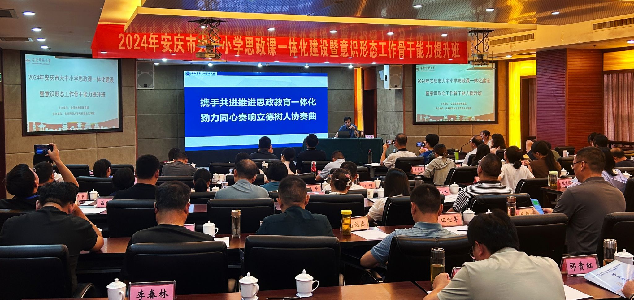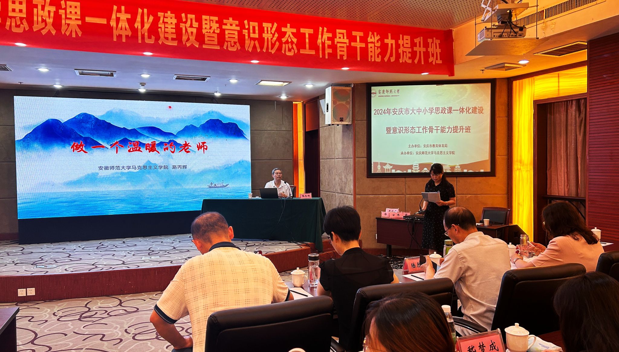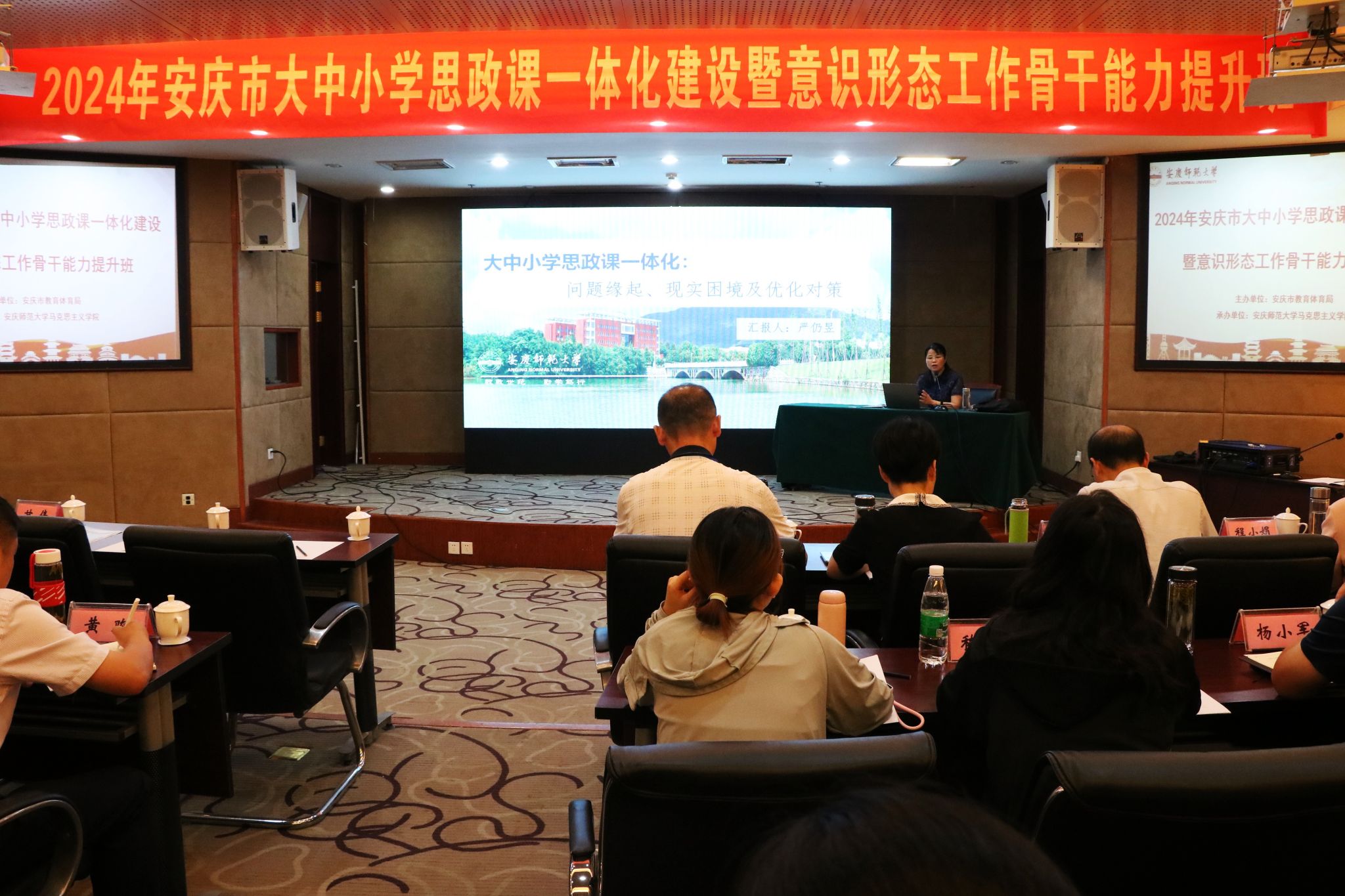 7月29日至8月2日,由安庆市教育体育局主办、122cc太阳成集团承办的“第四届安庆市大中小学思政课一体化建设暨意识形态工作骨干能力提升班”在潜山举办,来自安庆市的大中小学思政课教师近百人参加此次培训学习。