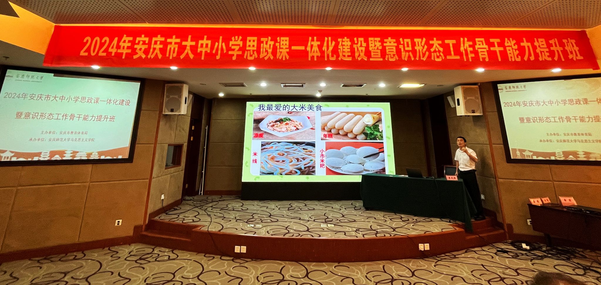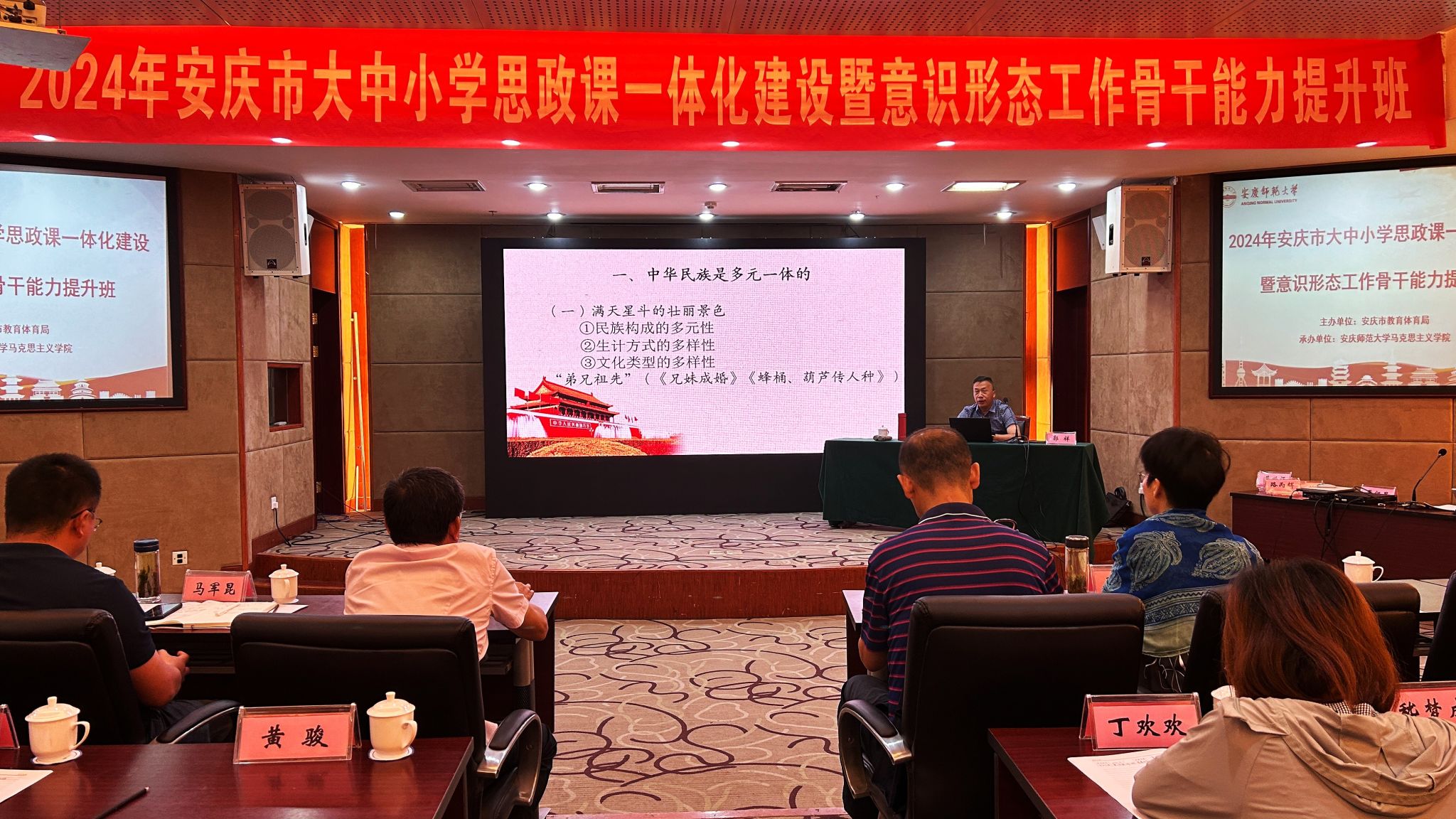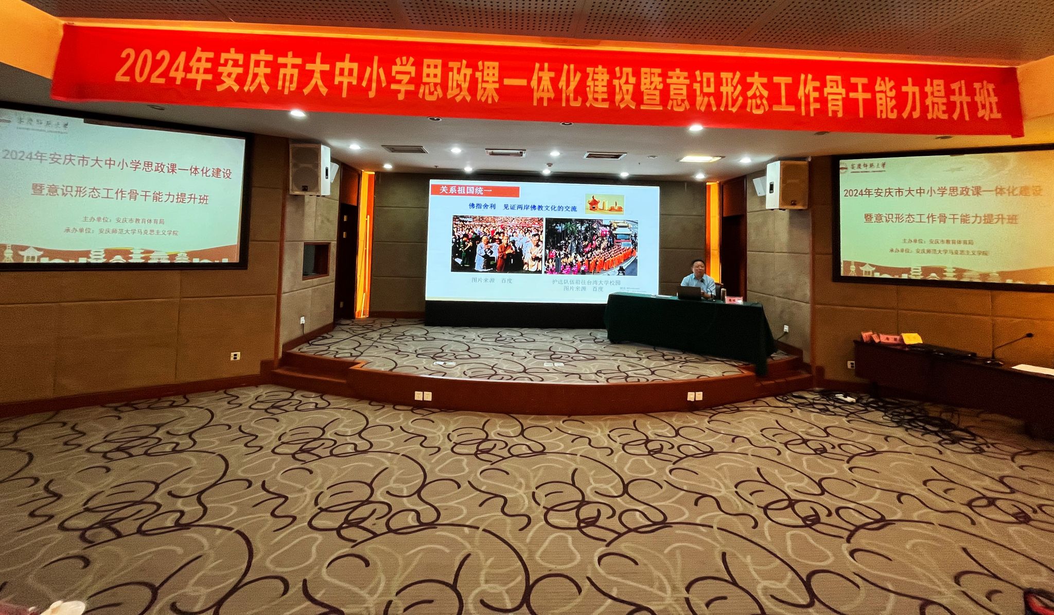 7月29日至8月2日,由安庆市教育体育局主办、122cc太阳成集团承办的“第四届安庆市大中小学思政课一体化建设暨意识形态工作骨干能力提升班”在潜山举办,来自安庆市的大中小学思政课教师近百人参加此次培训学习。