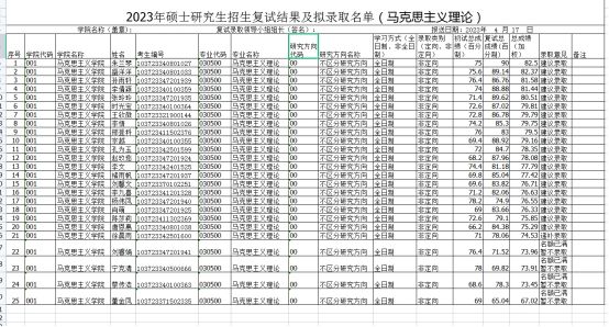 根据学校2023年硕士研究生复试录取工作实施方案,结合学科专业发展需要和本专业一志愿考生复试录取结果,经学校招生工作领导小组研究同意,本专业获得1名调配指标,按照考生总成绩由高到低排序递补拟录取徐晨雨考生为马克思主义理论专业硕士研究生,特此公告。