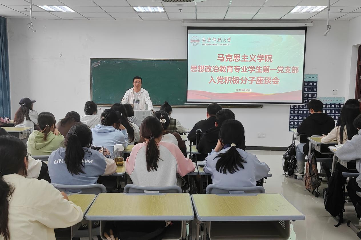 4月7日,学院在Q楼304教室召开思想政治教育专业第一党支部入党积极分子座谈会。第一党支部书记田梦甜、支部党员代表及全体入党积极分子参与会议。
