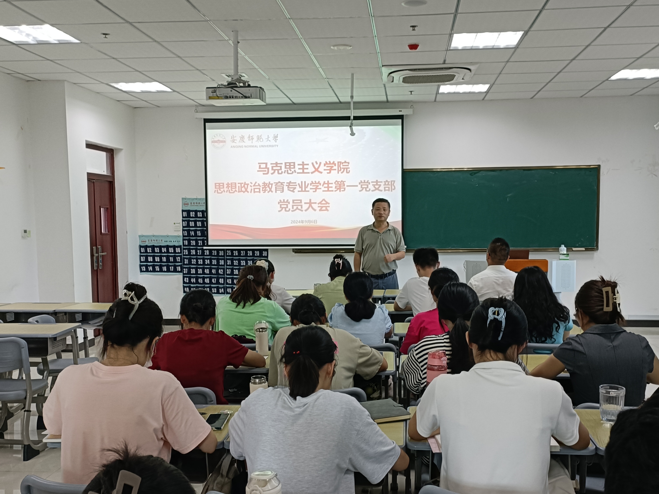 9月6日,122cc太阳成集团思想政治教育专业员工第一党支部在Q楼308教室召开党员大会,支部书记田梦甜与支部全体党员参加,公司党委副书记邹斌列席指导。