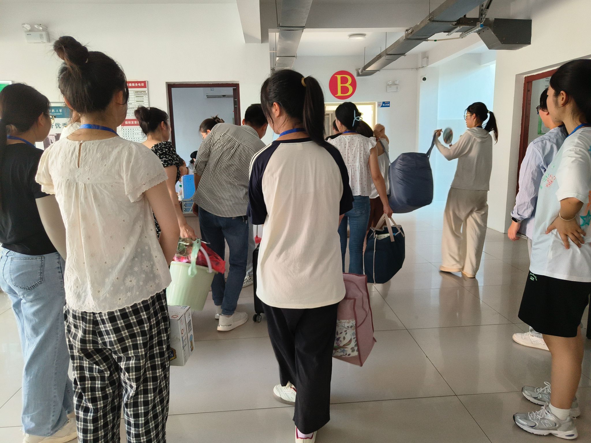 “除了完成学院交给我们的工作,我们还积极关注学院整个迎新工作的开展,哪里需要我们就向哪里调派人手,为大家服务是我们作为党员应尽的责任。”党员先锋示范小组组长2022级思想政治教育专业(3)班姚志伟如是说。“今天下午,在新生入学的高峰期后,我们支部党员同志还协同宿舍安全巡查组在新生所在楼层进行巡查,提醒新生防范电信诈骗,对于可能存在的潜在风险及时进行干预并及时上报学院。”