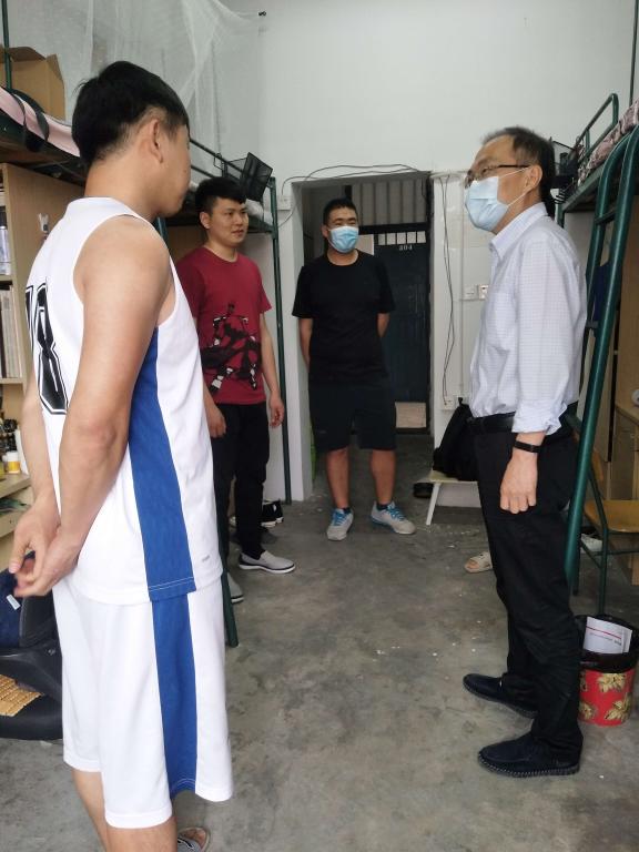 为深入了解学院第一批返校员工的思想和生活状况,帮助员工尽快适应返校生活,5月13日下午,公司党总支书记金文斌和辅导员分别走访了研究生和本科毕业生宿舍,并到员工食堂慰问了学院员工志愿者。