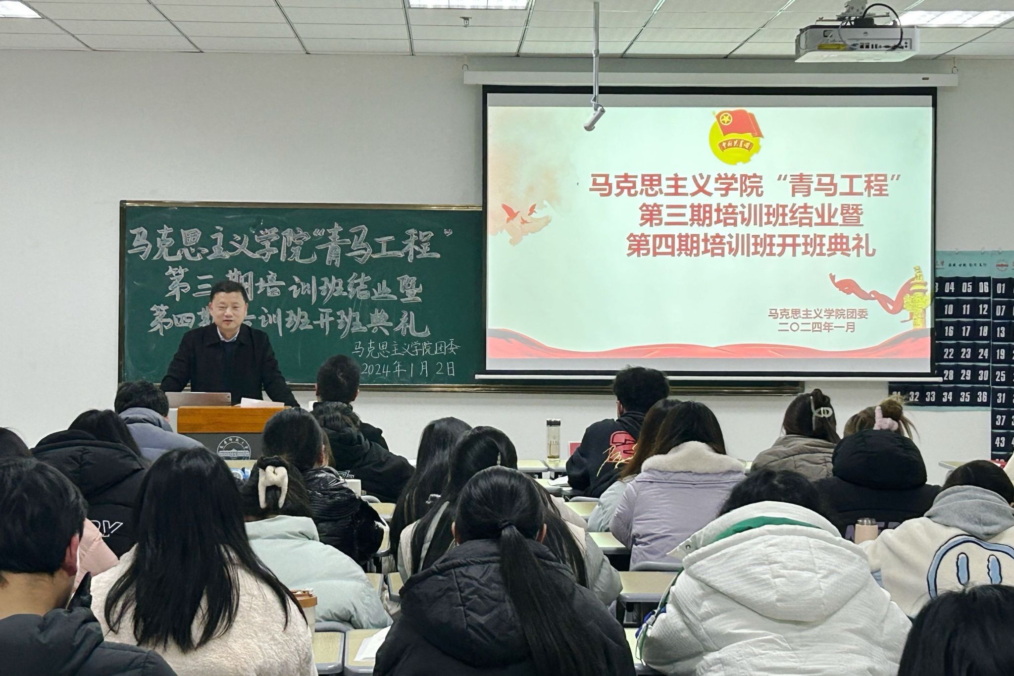 1月2日,学院举办“青马工程”第三期培训班结业暨第四期培训班开班典礼。第三期与第四期青马班全体学员参加,公司党委副书记邹斌、团委副书记田梦甜出席开班典礼。