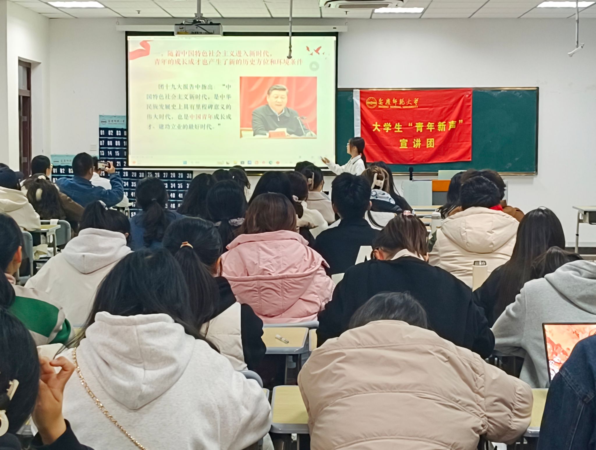 11月29日,“青年新声”宣讲团在Q楼308教室开展以“新时代中国青年的使命和担当”为主题的宣讲活动,学院本科生和研究生各班级代表参加宣讲。