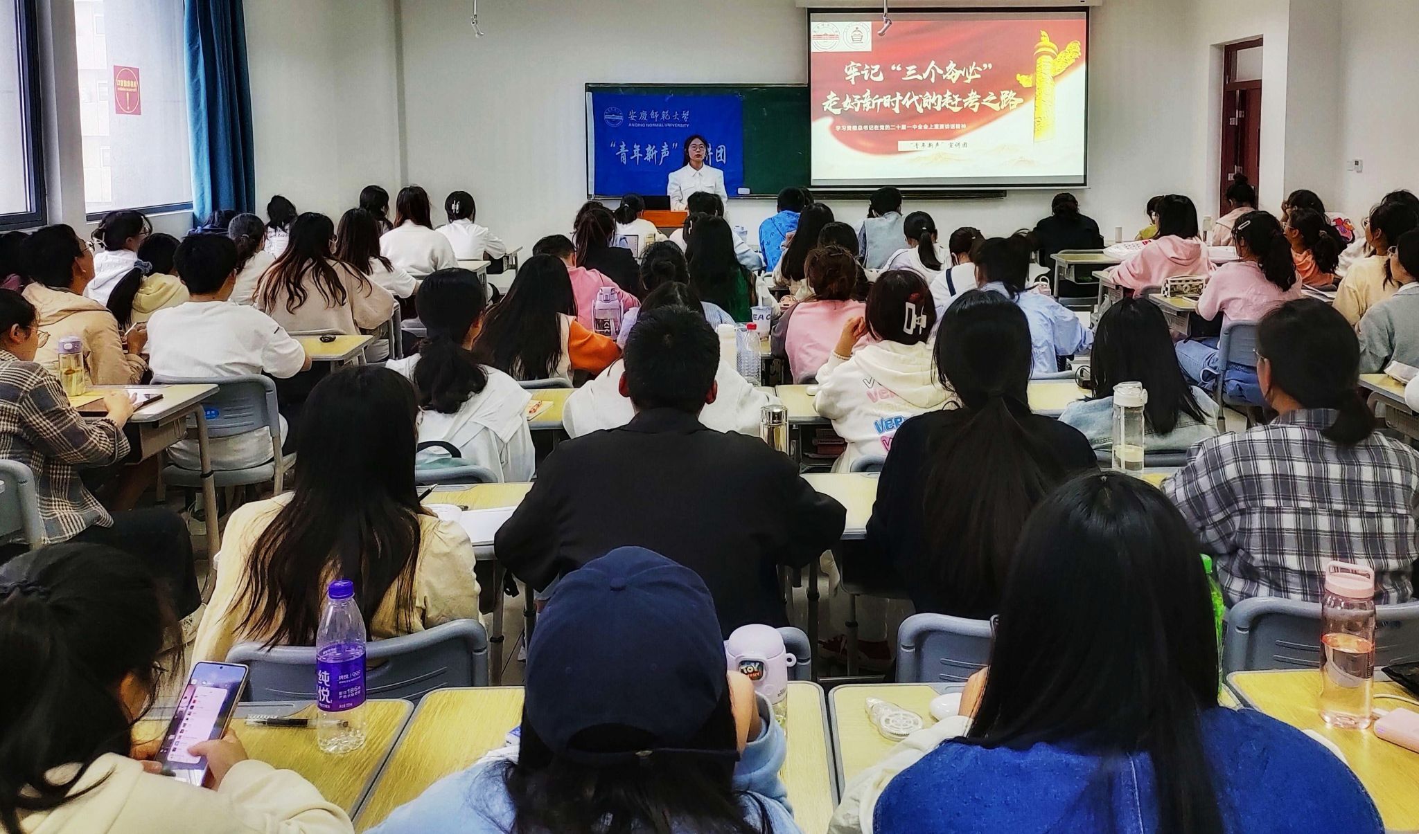 主题宣讲分为“牢记‘三个务必’走好新时代的赶考之路”和“以中国式现代化全面推进中华民族伟大复兴”两场。宣讲人向大家介绍了“三个务必”的发展过程、具体内容、现实意义及践行方向和实现“以中国式现代化推进中华民族伟大复兴”应坚持的方法原则。宣讲人强调,广大青年要全面践行“三个务必”,让“三个务必”精神深入人心,在全社会形成人人践行“三个务必”的优良风气,为建设富强民主文明和谐美丽的社会主义现代化强国贡献自己的力量。