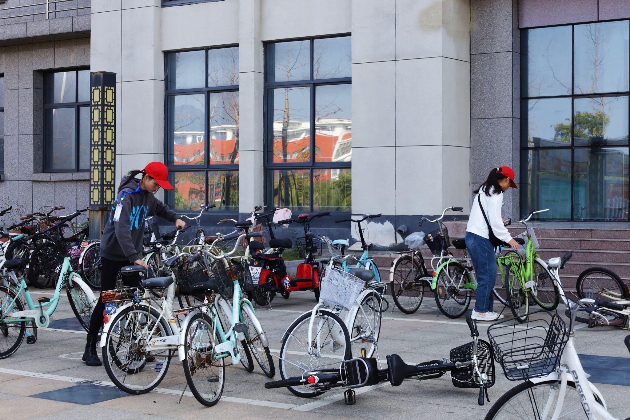 “同学你好!麻烦将自行车停至红线以内。”从3月开始,在上下课“高峰期”,龙山校区西苑食堂、教学楼群等“车流量”较大的地点附近,常常能够看见一群戴红帽子的志愿者,据了解,这是学院“敬敷思源”志愿服务队发起的一场“规范停车 文明校园”志愿行动,员工志愿者们通过耐心劝导和协助疏通使自行车“各安其位”,为广大师生的日常出行带来便利。