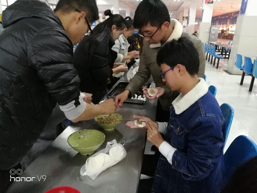 12月28日下午,2017级两个班级班委会集体策划筹备的“迎新年·连情谊”包饺子活动在员工食堂成功举办,2017级全体新生及辅导员代表参加了活动。活动由班级心理委员主持。