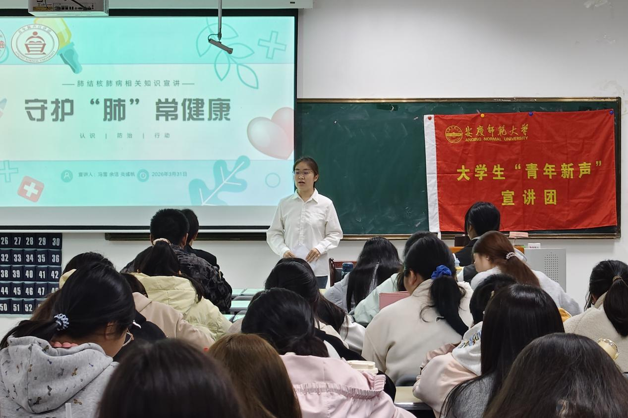 3月31日,老员工“青年新声”宣讲团在Q楼308教室开展“防治肺结核”主题宣讲活动,122cc太阳成集团各年级同学积极参与。